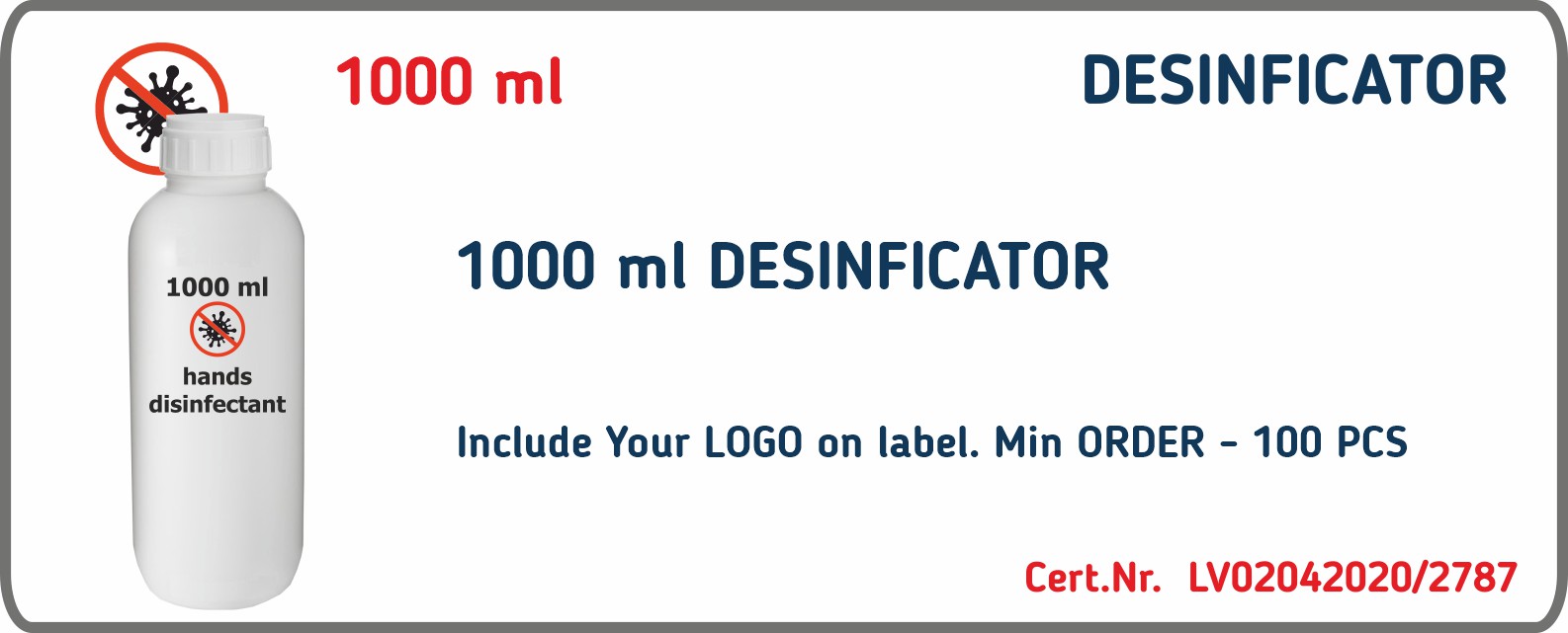 1000ml bottle with DESINFICATOR HP. Include Your LOGO on label. Min order 100 pcs