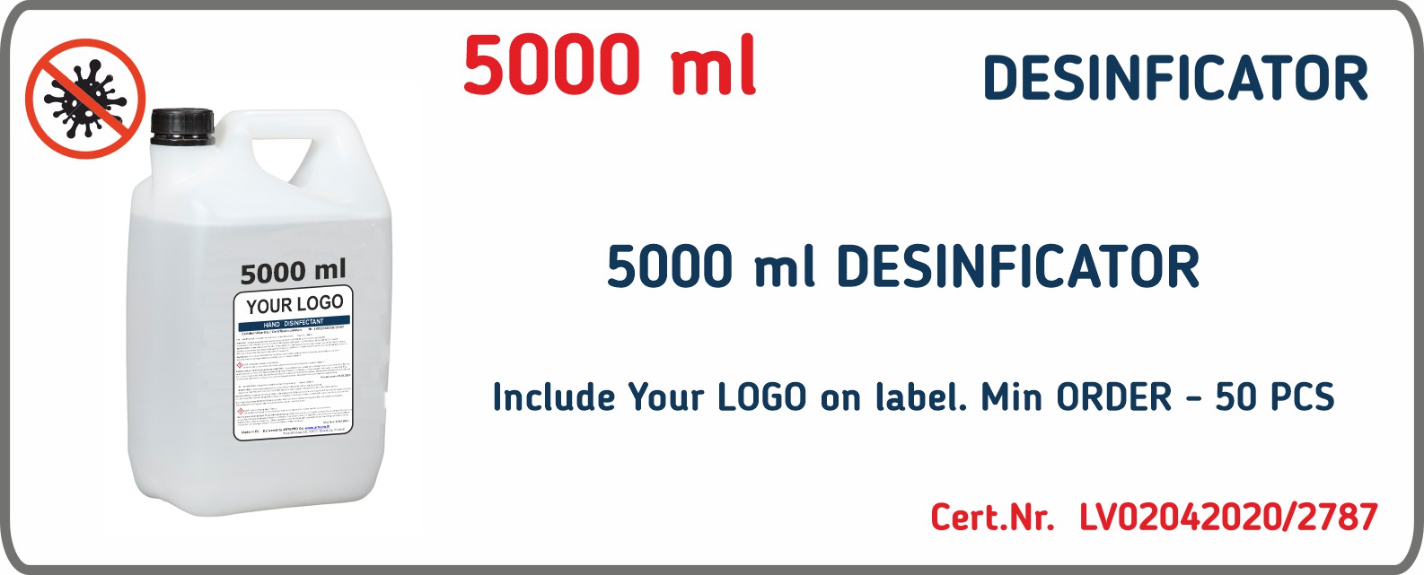 5000ml bottle with DESINFICATOR HP. Include Your LOGO on label. Min order 50 pcs