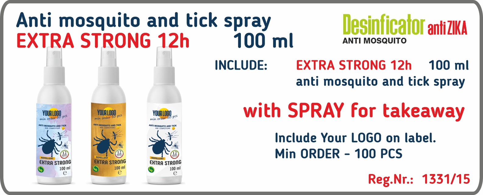 Anti MOSQUITO and TICK spray - EXTRA STRONG 12h. 100ml. Include Your LOGO on label. Min order 100 pcs