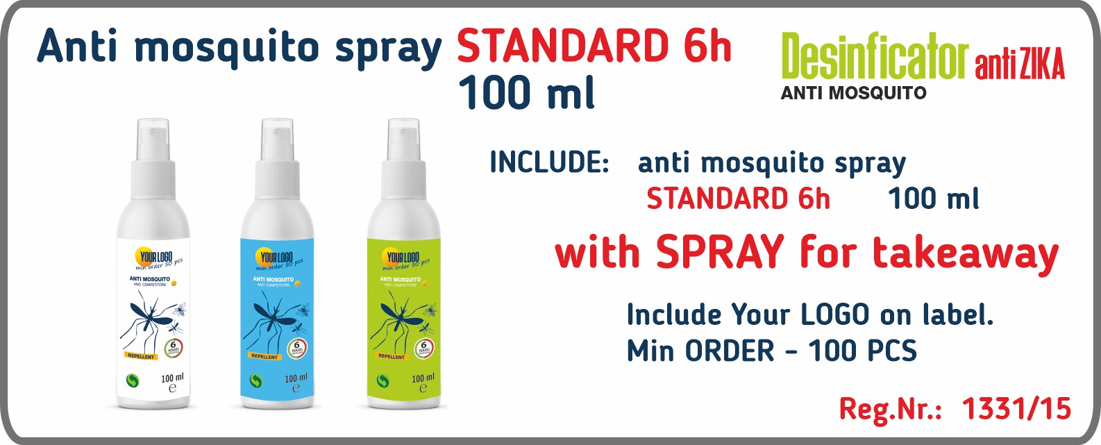 Anti MOSQUITO spray - STANDARD 6h. 100 ml. Include Your LOGO on label. Min order 100 pcs