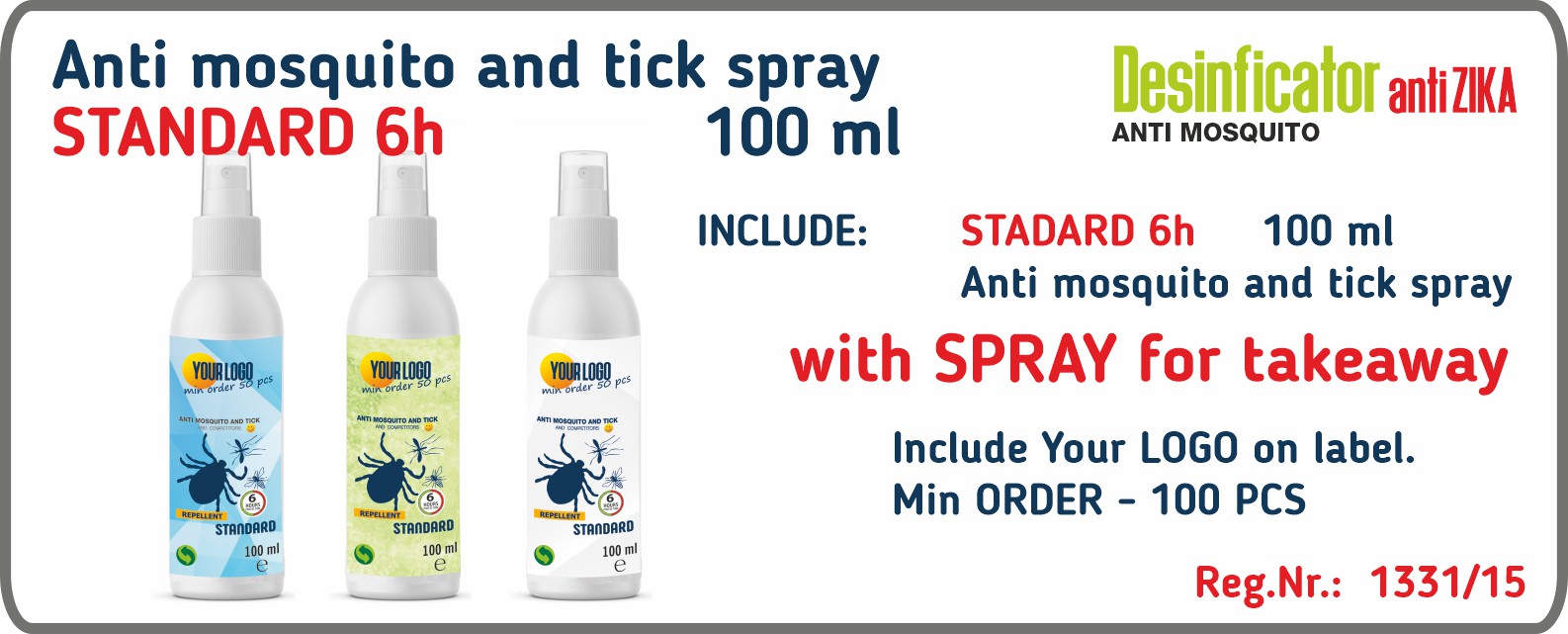 Anti MOSQUITO and TICK spray - STANDARD 6h. 100ml. Include Your LOGO on label. Min order 100 pcs