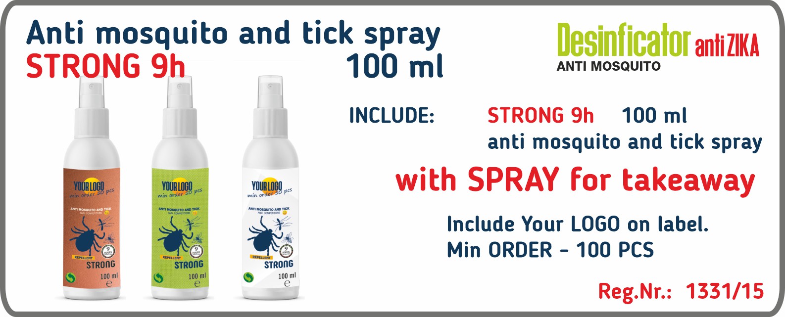 Anti MOSQUITO and TICK spray - STRONG 9h. 100ml. Include Your LOGO on label. Min order 100 pcs
