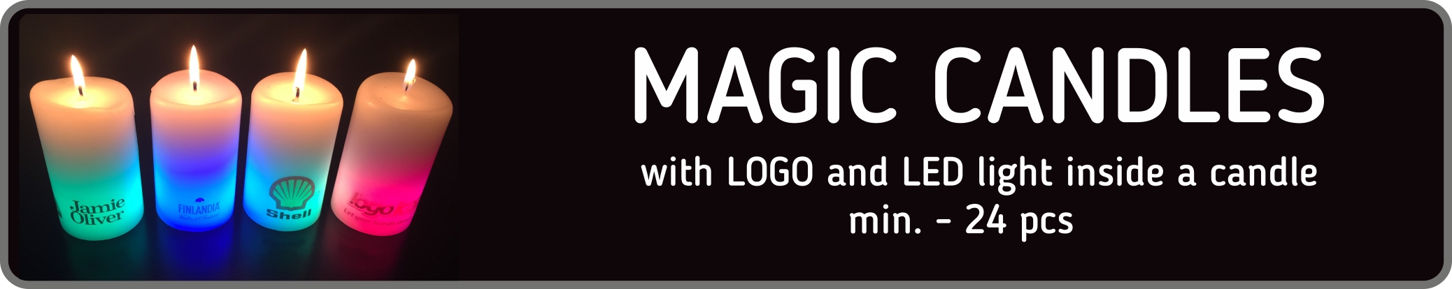 Magic candles with ledlight inside and printed FULL COLOR YOUR LOGO just from 24 pcs.